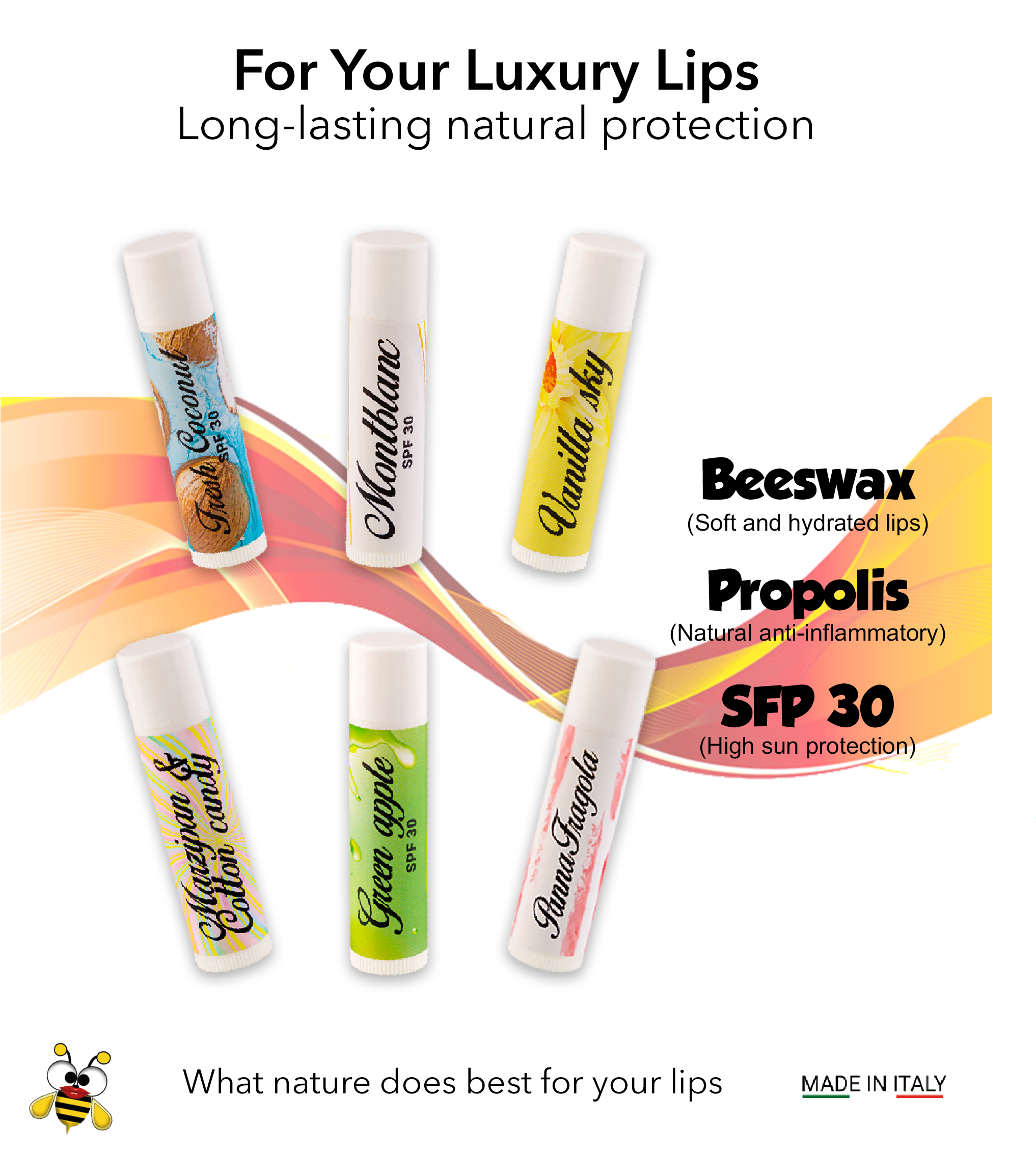 To keep your lips soft, hydrated, and fragrant all year round, try our super hydrating Lip Balms. Our exclusive formula includes bee-derived ingredients like beeswax and propolis. The final touch is provided by the soothing action of jojoba oil and super-nourishing vitamin E, which leaves lips soft. Available in 6 different fragrances and with SPF 30.